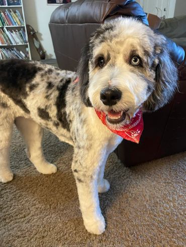 At BernePoodleDoos, we are a Hypoallergenic CKC Bernedoodle, Goldendoodle Tuxedo and AKC Tri-Color Parti Poodle breeder with years of experience. We take great joy in bringing smiles to people's faces with our adorable, snuggly, and fluffy-curled pups. We raise them in our home and begin stimulation training at 2 weeks. They will come unafraid of grooming and snuggly as can be. We train them to be great ESA pups and can begin Service dog training as well before they come to you for the rest. Our Poodle Mama Poppy, is our ESA and Service dog. She alerts us to Seizure Activity, Blood Pressure Changes (POTS anyone), Allergic Reactions and even Blood Sugar levels. Poodles are the smartest dogs out there and learn commands within only a few repitions.