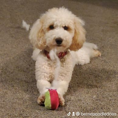 Mama Poppy Poodle Doo has so much fun with her toys. She learns commands and tricks incredibly fast. She loves other dogs, has a bit of sass and adores her "hooomans"!!